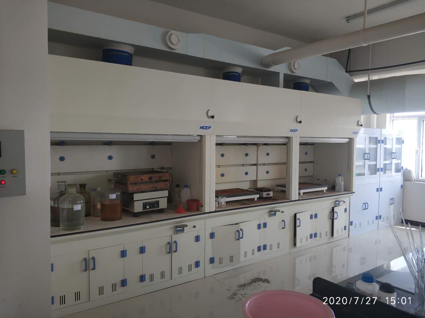 化學(xué)實(shí)驗(yàn)室的通風(fēng)方式有兩種,即局部排風(fēng)和全室通風(fēng)。局部排風(fēng)是在有害物質(zhì)產(chǎn)生后立即就近排出,這種方式能以較少的風(fēng)量排走大量的有害物質(zhì),能量省而效果好,是改善現(xiàn)有實(shí)驗(yàn)室條件可行和經(jīng)濟(jì)的方法,也可能是適應(yīng)新實(shí)驗(yàn)室通風(fēng)建設(shè)的比較好的方式。對(duì)于有些實(shí)驗(yàn)不能采用局部排風(fēng),或局部排風(fēng)滿足不了排風(fēng)要求時(shí),采用全室通風(fēng)。